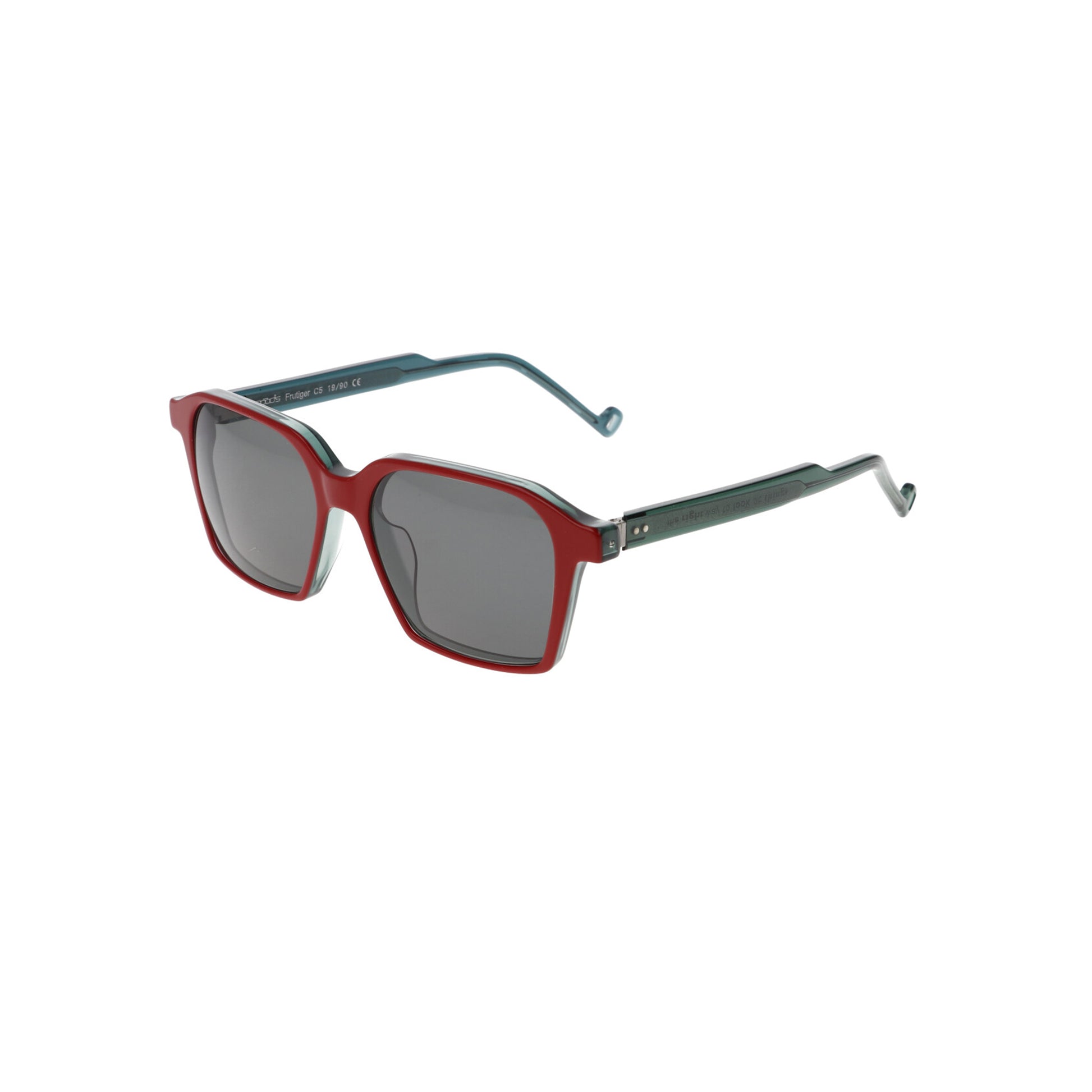 Frame front: The frame front reproduces the original font design in proportion to the thicknesses between the relatively homogeneous horizontal and vertical temples and the inclination of the ascending and descending temples. The resulting frame has a delicately retro-futuristic taste, linear but not lacking