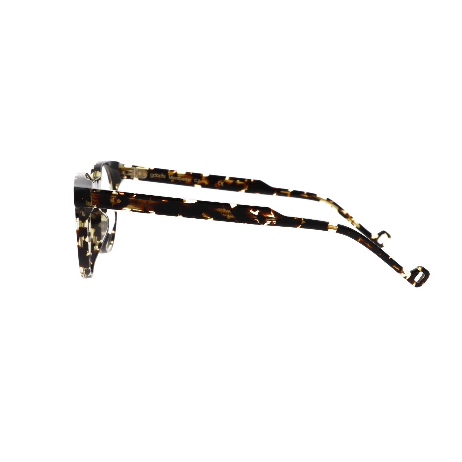 Temples: 'sail' model, named after the shape reminiscent of the tiller of a rudder. The perforated 'o', taken from the Good's logo, is reproduced at the end.