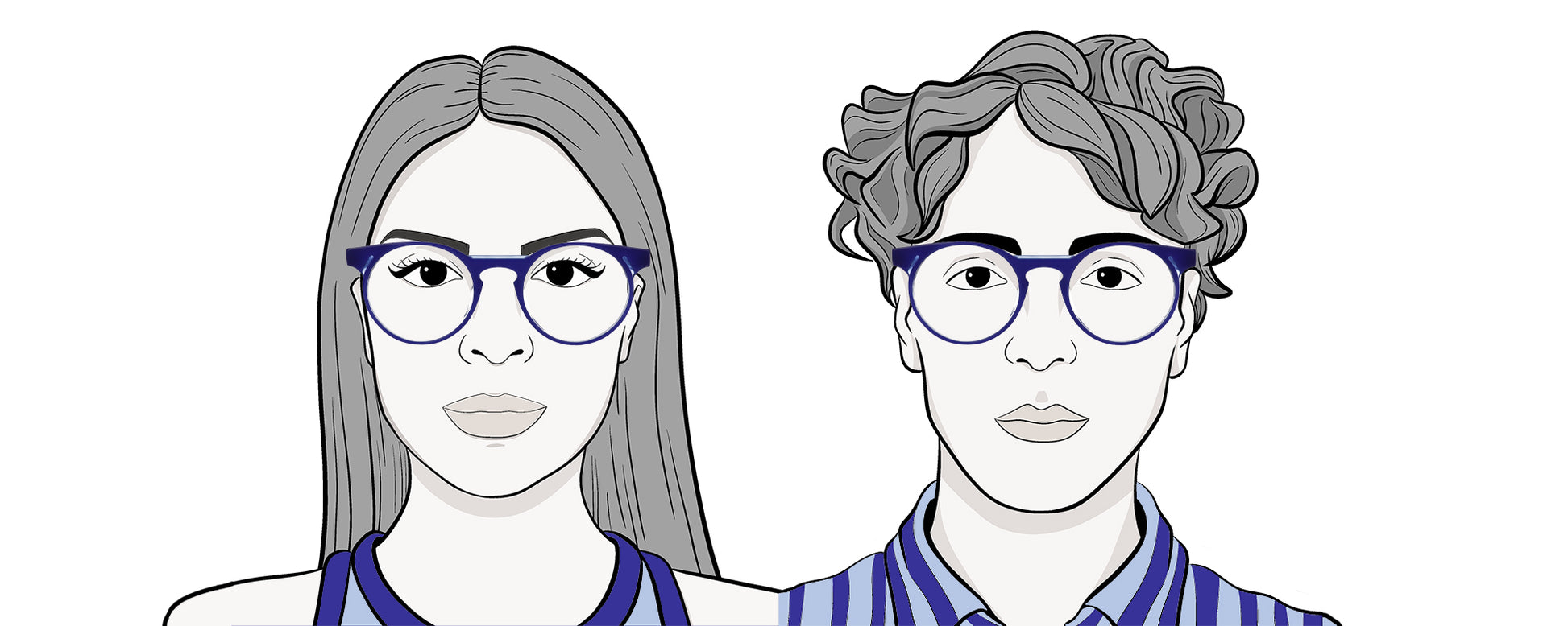 Front: The front has been designed with the proportions of the font in mind, characterised by short descenders and wide openings that give the frame a soft, delicately sinuous and well-proportioned line. The opaline top interacts with the translucent base in an interesting trompe d'oeil effect that lightens the perceptual weight of the frame, and the double colour is enhanced by the special milling in the bridge and snouts