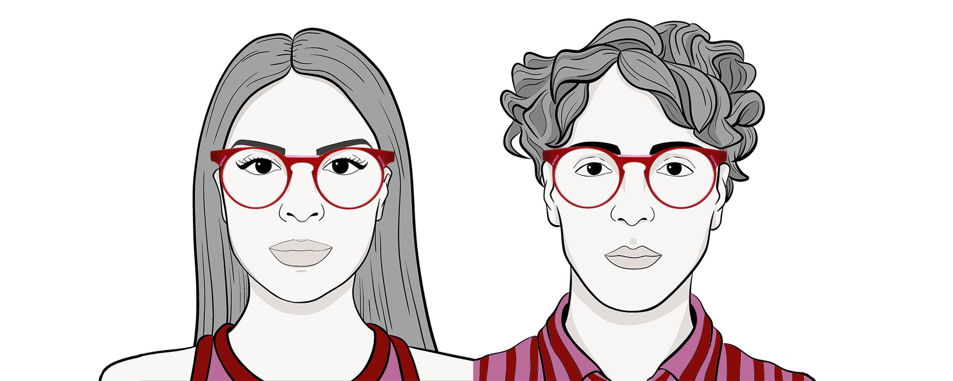 Front: The front has been designed with the proportions of the font in mind, characterised by short descenders and wide openings that give the frame a soft, delicately sinuous and well-proportioned line. The opaline top interacts with the translucent base in an interesting trompe d'oeil effect that lightens the perceptual weight of the frame, and the double colour is enhanced by the special milling in the bridge and snouts