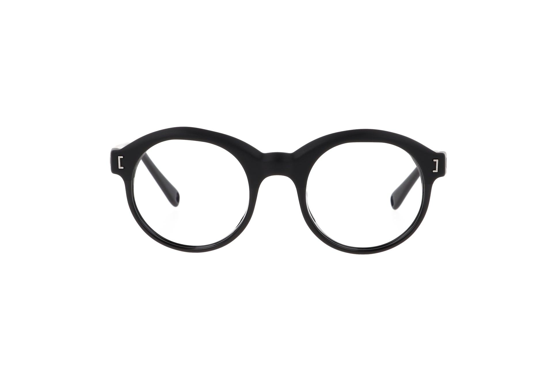 FRONT FRAME:the circular shape of the lenses present an upper linear cut that enhances thickness.