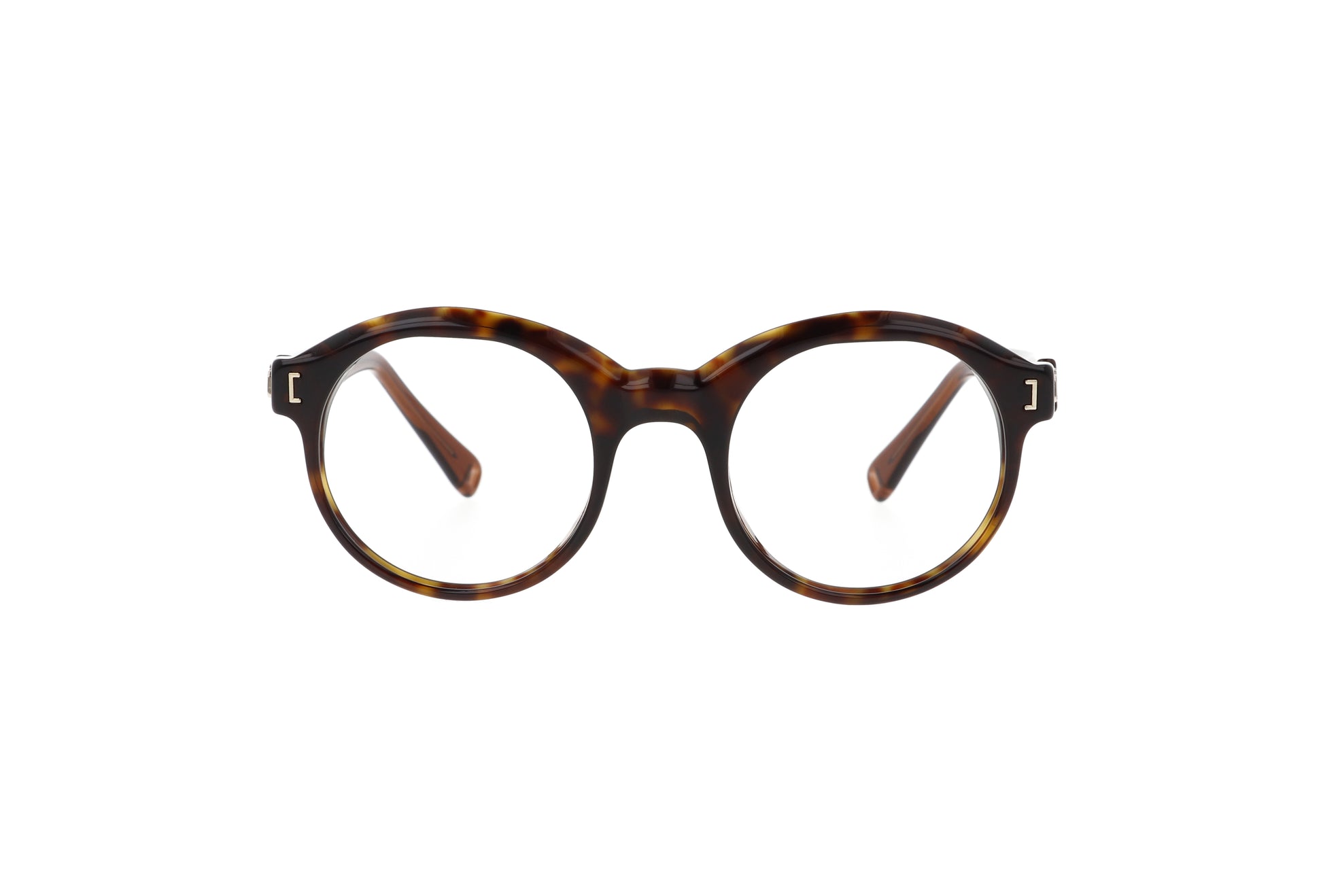 FRONT FRAME:the circular shape of the lenses present an upper linear cut that enhances thickness.