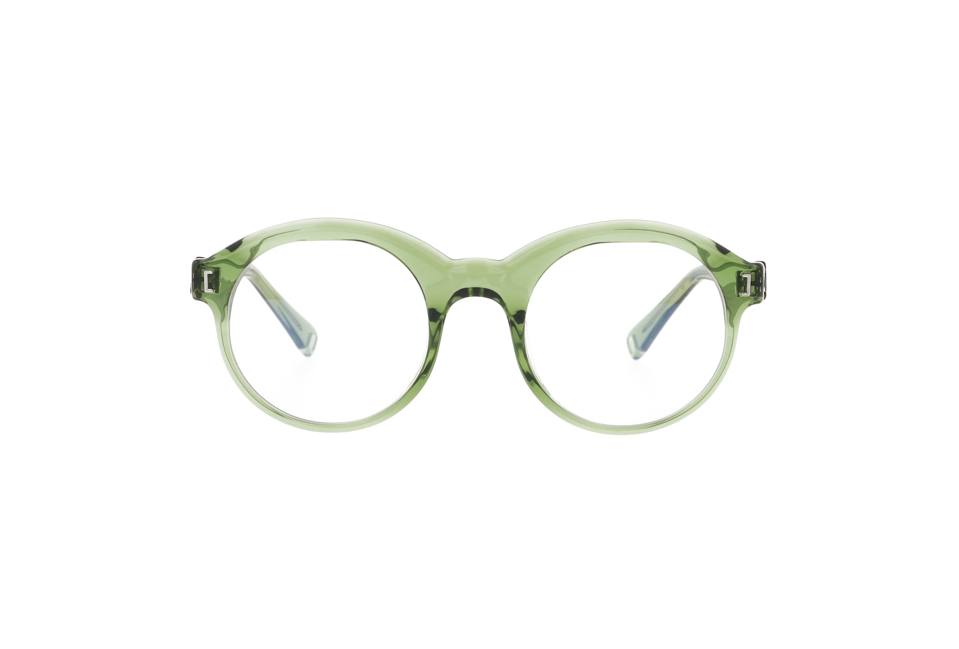 FRONT FRAME:the circular shape of the lenses present an upper linear cut that enhances thickness.