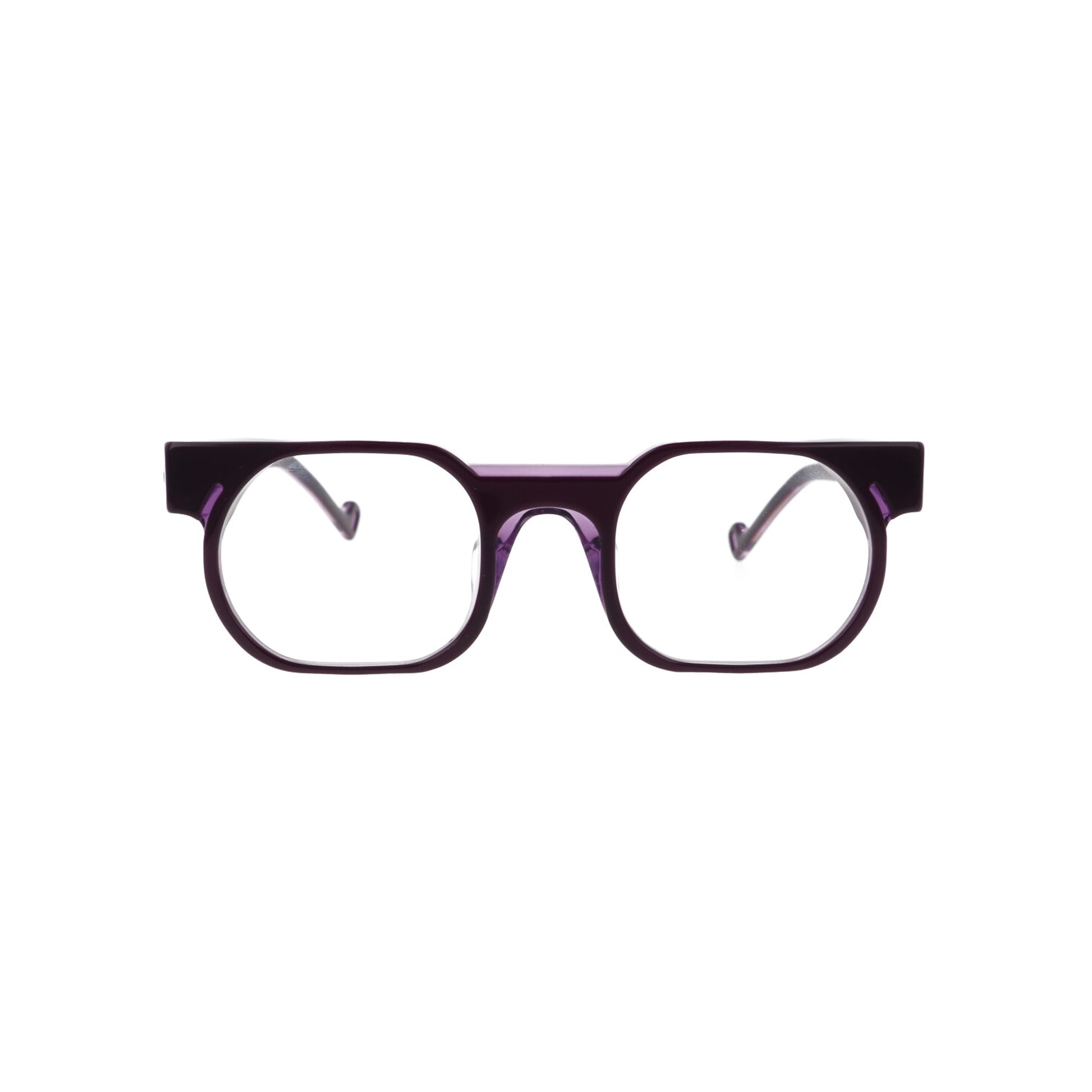 Front: the front follows the design of the font, reproducing its light strokes and proportions. The side snouts are inspired by the font's graces, emphasised by the milling, giving the eyewear a strong taste yet not lacking in delicacy.