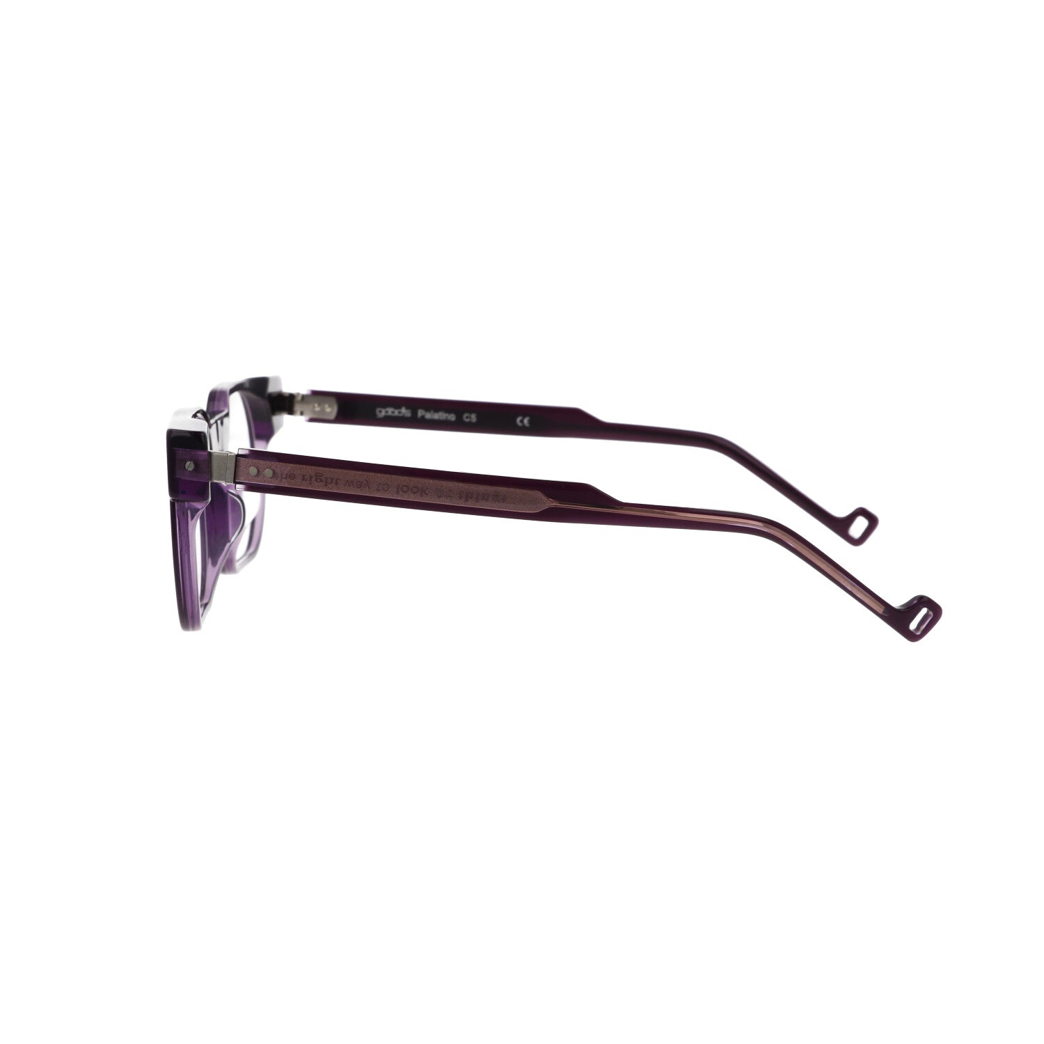 Temples: 'sail' model, named after the shape reminiscent of the tiller of a rudder. The perforated 'o', taken from the Good's logo, is reproduced at the end.