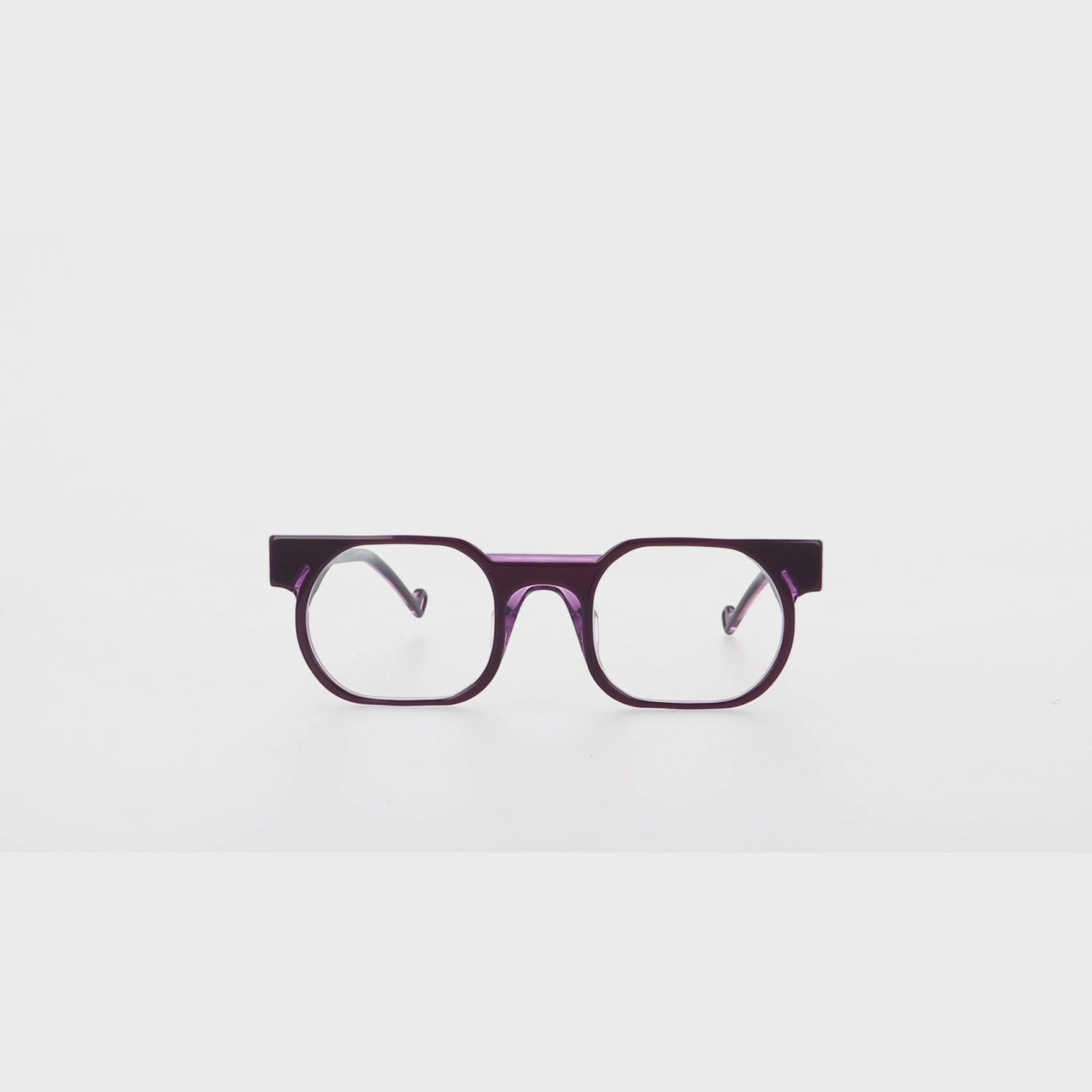 The opaline top interacts with the translucent base in an interesting trompe d'oeil effect that lightens the perceptive weight of the frame by concealing some of its functional elements, such as the bridge, which partially becomes a ghost.