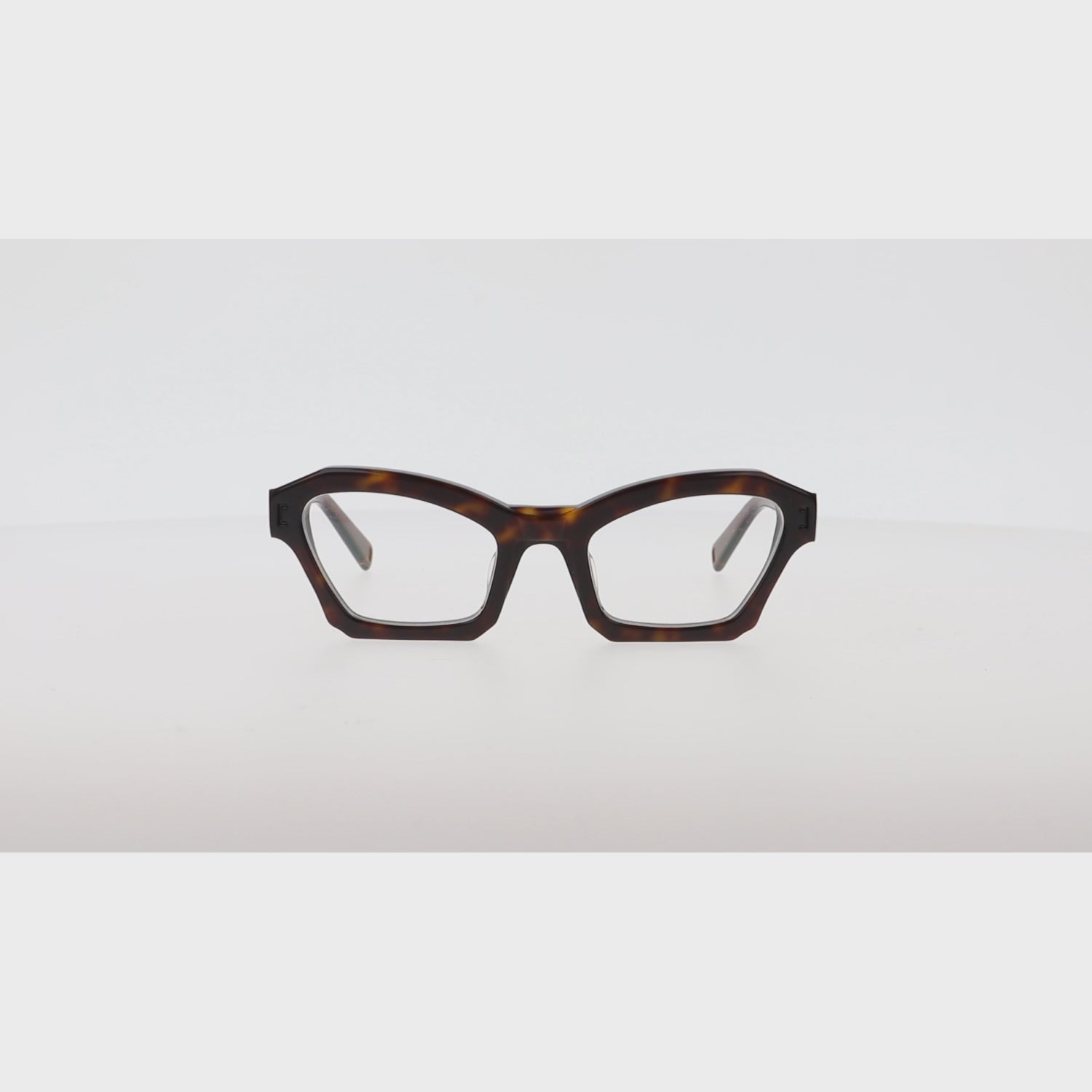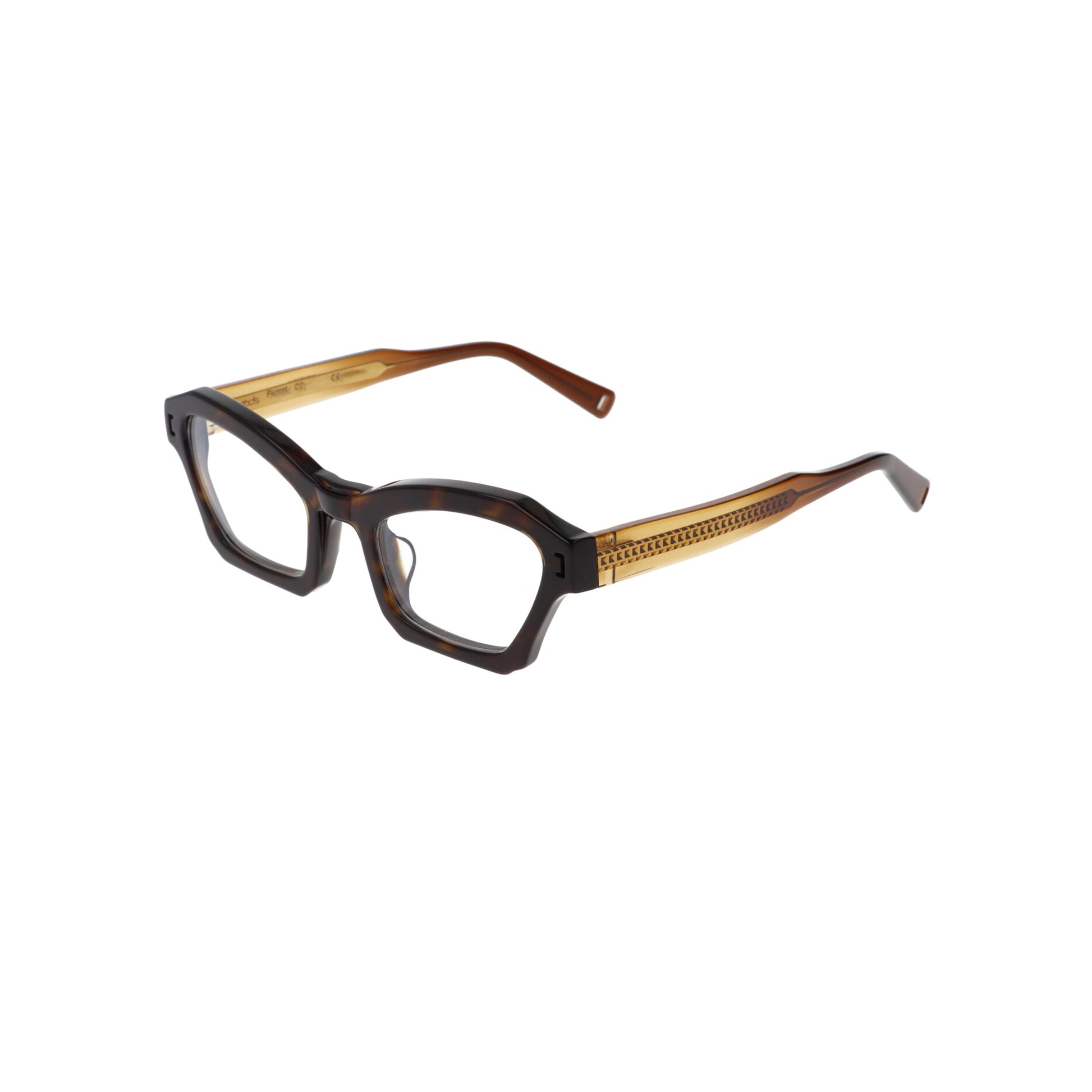 Frontal frame: the front of our Parent frame style is characterized by the oblique and discontinuous lines that have marked Claude Parent’s creative signature. The upper section of the front draws a cat-eye line reminiscent of the 1950s, reinterpreted with a contemporary flare thanks to the contrast with the sharp lines of the lower section.