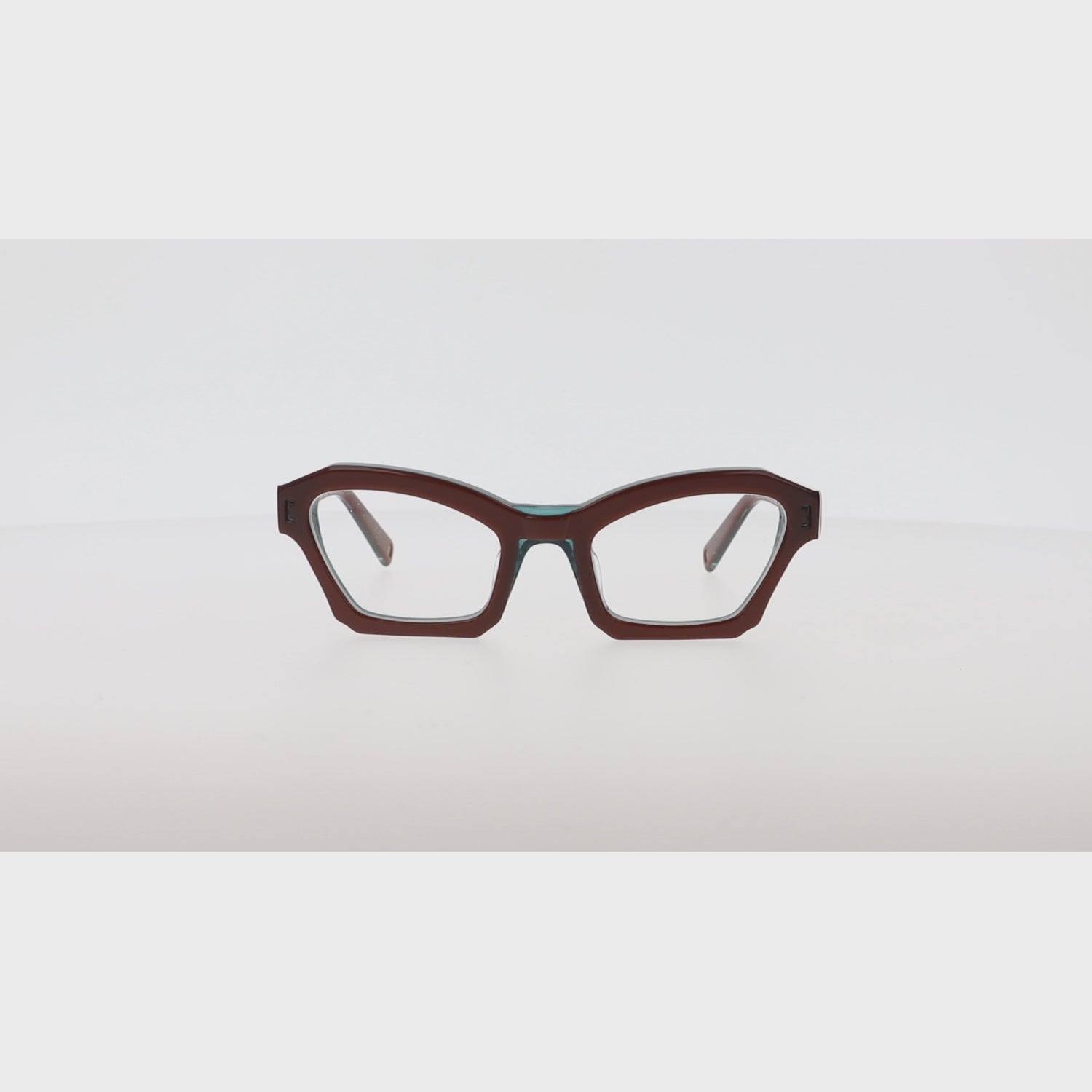 Frontal frame: the front of our Parent frame style is characterized by the oblique and discontinuous lines that have marked Claude Parent’s creative signature. The upper section of the front draws a cat-eye line reminiscent of the 1950s, reinterpreted with a contemporary flare thanks to the contrast with the sharp lines of the lower section.